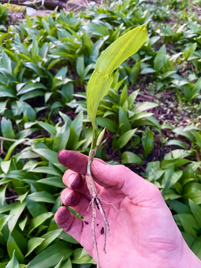 It is illegal to dig up any bulb, root, or tuber from any land that isn’t your own. Only the ’Four F’s’ are allowed to be gathered when foraging; Flowers, Foliage, Fruit & Fungi’