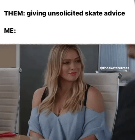 It can feel as though we are not being heard when you keep being offered unsolicited advice after a clear decline, but more than anything it’s just straight up annoying. Its OK to set boundaries and it’s OK to walk (or skate!) away from conversations if you are frustrated by the interaction. Your personal space is more important.